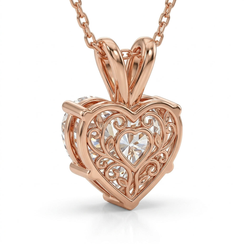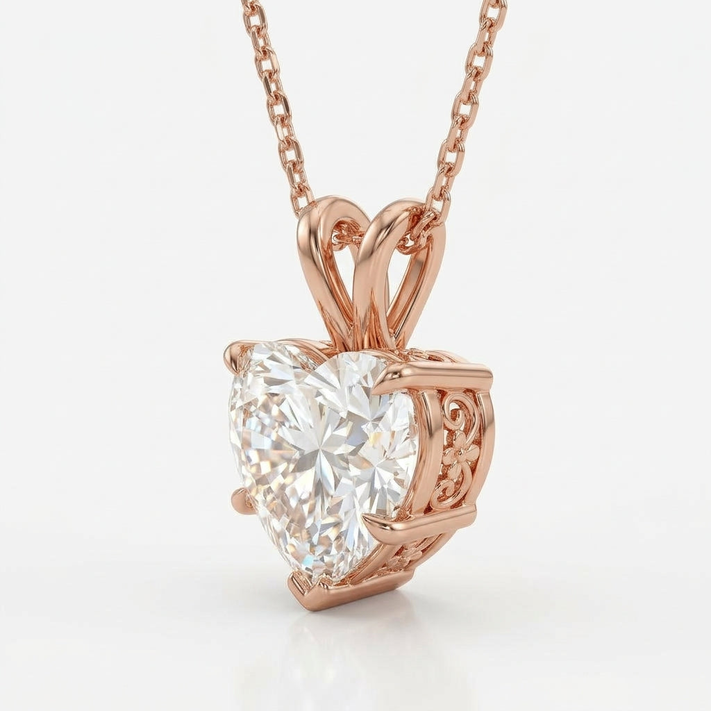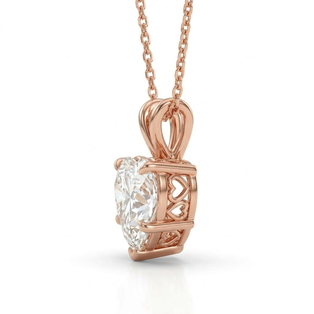 〖3ct / Dカラー VS1〗ラボグロウンダイヤモンド ネックレス|K18ローズゴールド|ハートシェイプ ペンダント|IGI鑑定書付き- オーダー制作